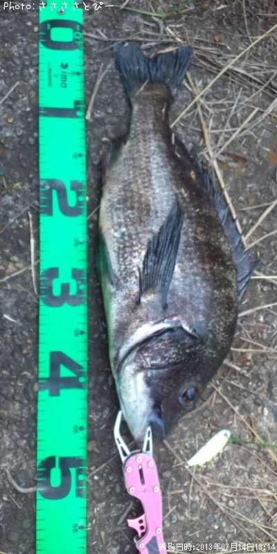 2013年7月14日13時14分に釣れたクロダイのポイント千葉県クロちゃんの住みか(関東地方)ささささとぴーさん釣果詳細情報です。この情報を詳しく見ることで、ルアー、ロッド、タックル(仕掛け)など効率よく自分なりの爆釣を初心者でも狙うことができます。