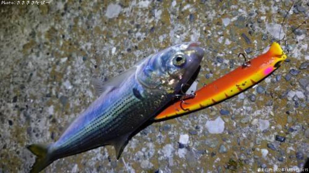 2022年11月28日19時15分に釣れたシーバスのポイント千葉県内房(関東地方)ささささとぴーさん釣果詳細情報です。この情報を詳しく見ることで、ルアー、ロッド、タックル(仕掛け)など効率よく自分なりの爆釣を初心者でも狙うことができます。